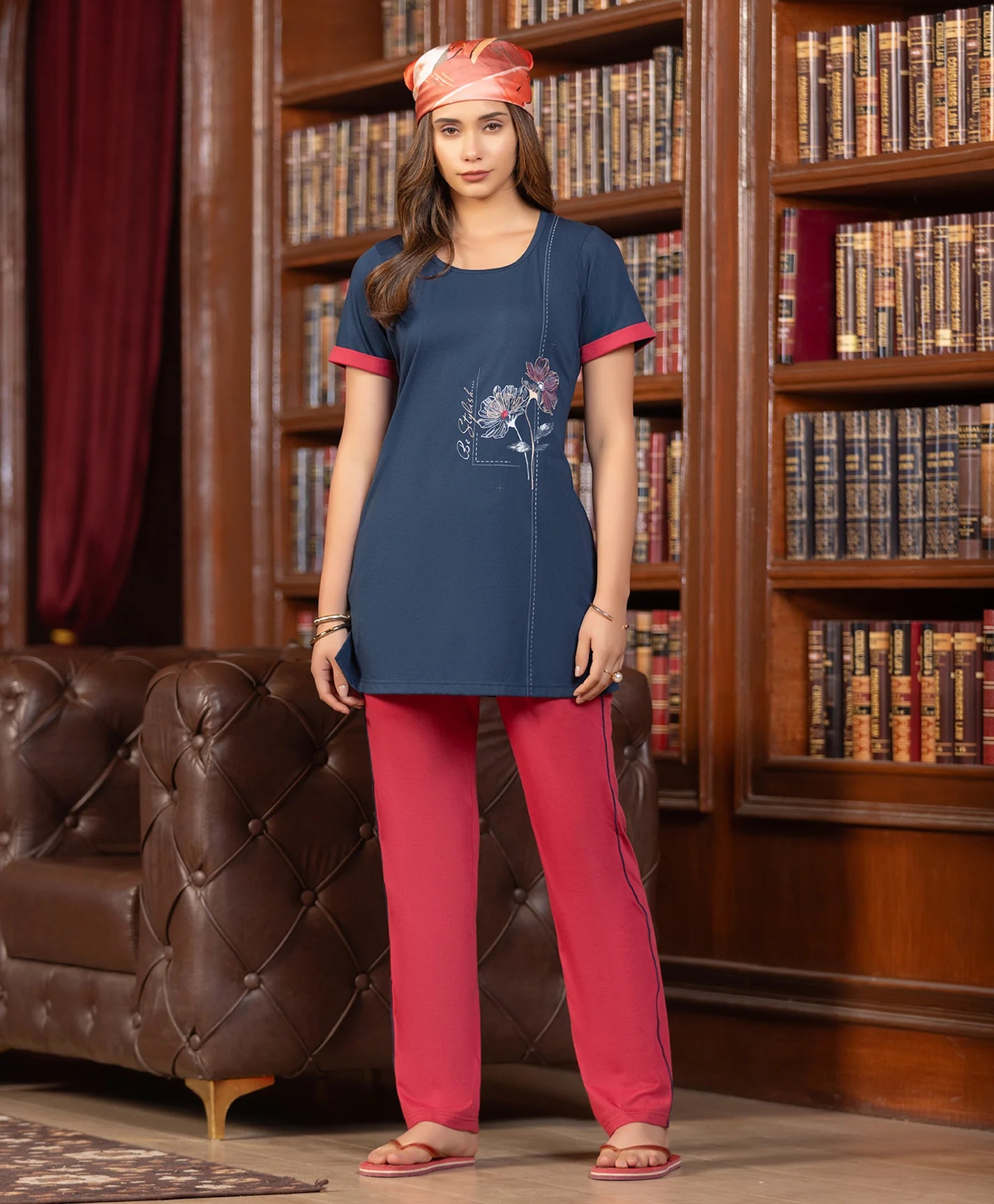 This beautifully designed night suit set features a subtle floral print that adds a touch of elegance to your everyday comfort wear. Crafted for a relaxed fit, it ensures ease of movement and all-night comfort. The soft fabric and minimal design make it perfect for lounging or sleeping in style. A great choice for those who love comfort with a hint of sophistication.