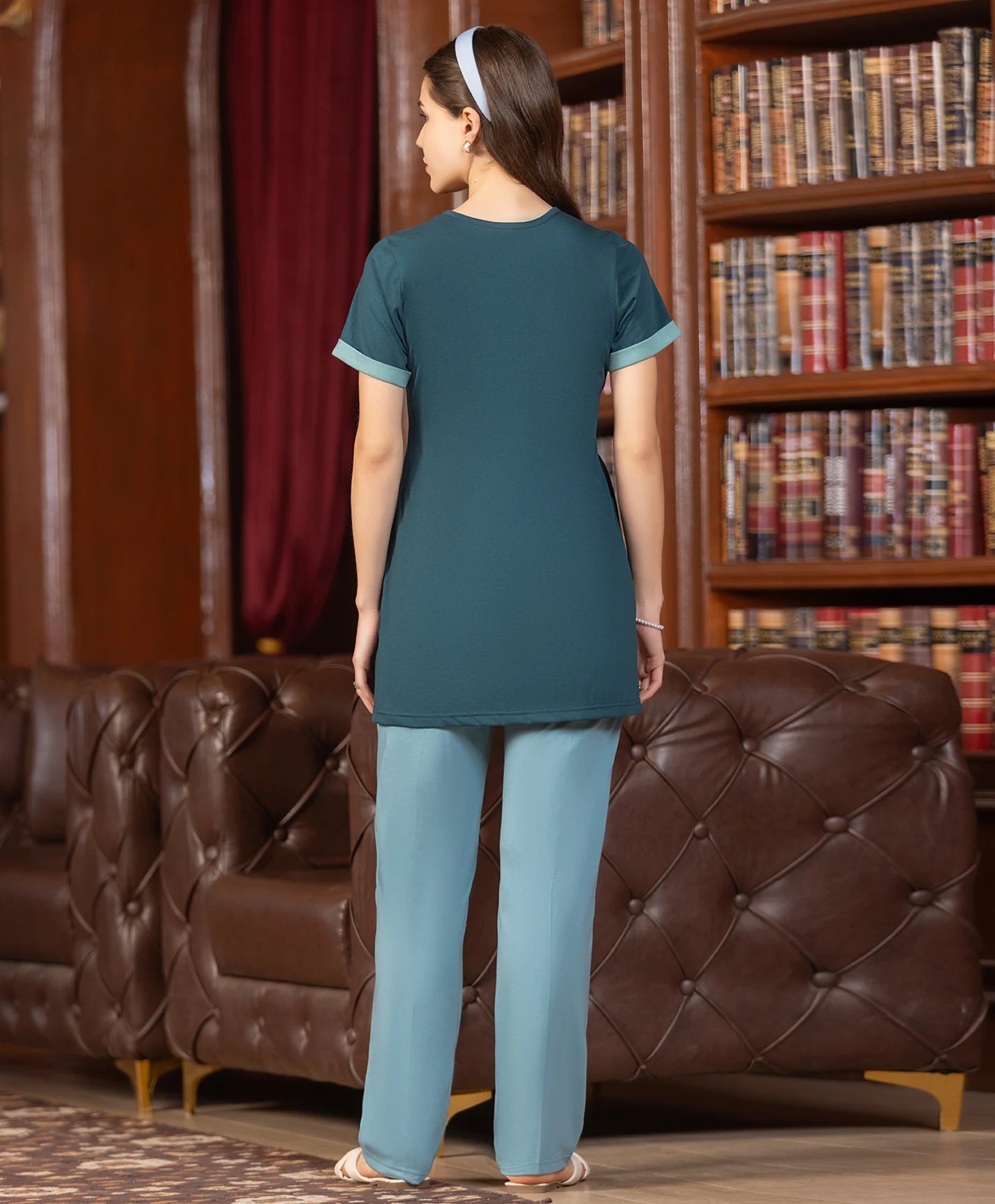 Design: Relaxed-fit top paired with easy-going pants.