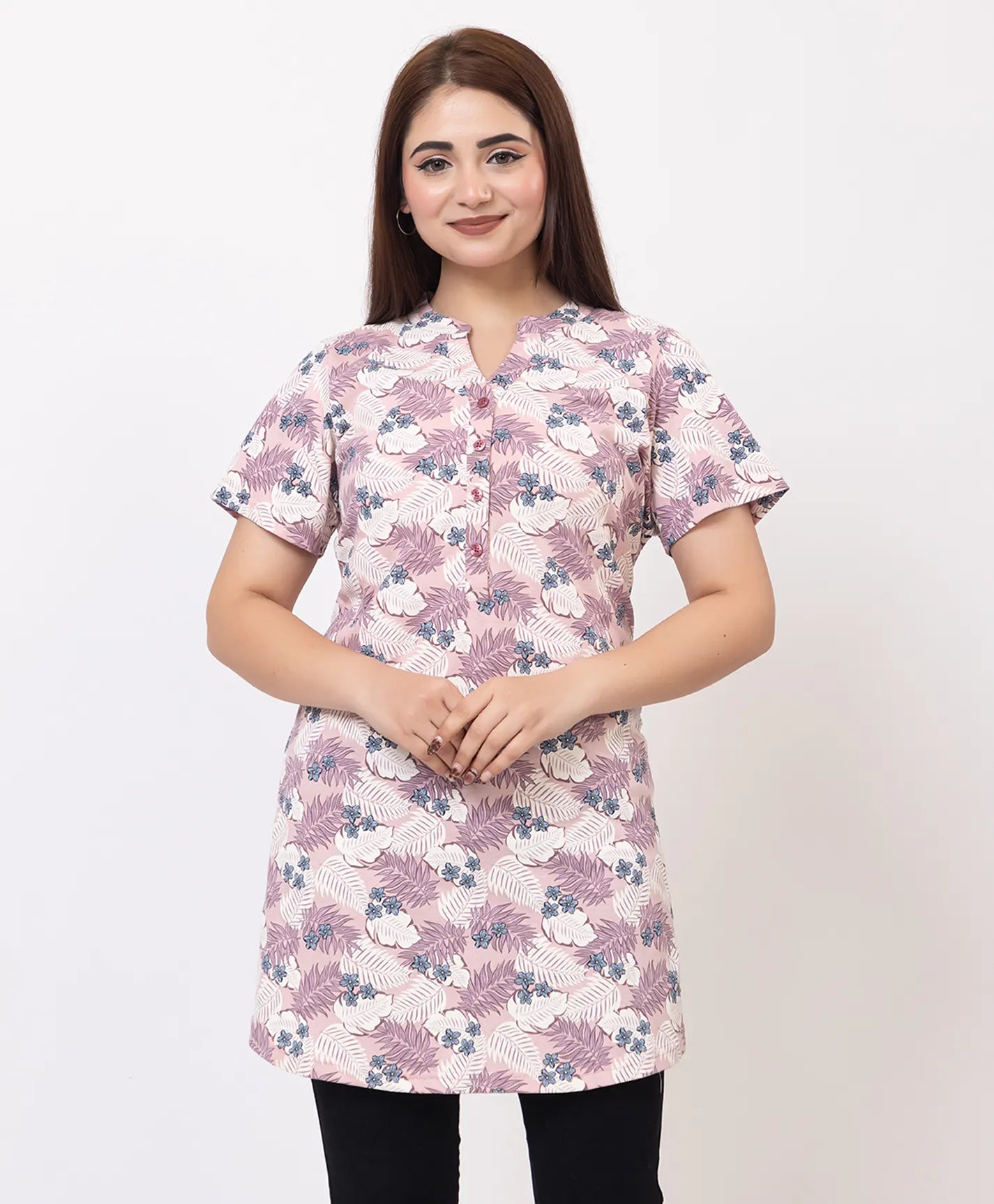 Add a touch of effortless charm to your wardrobe with this stylish short kurti. Designed with elegant floral prints and a comfortable fit, it is perfect for everyday fashion. A versatile piece that pairs beautifully with jeans, leggings, or trousers.